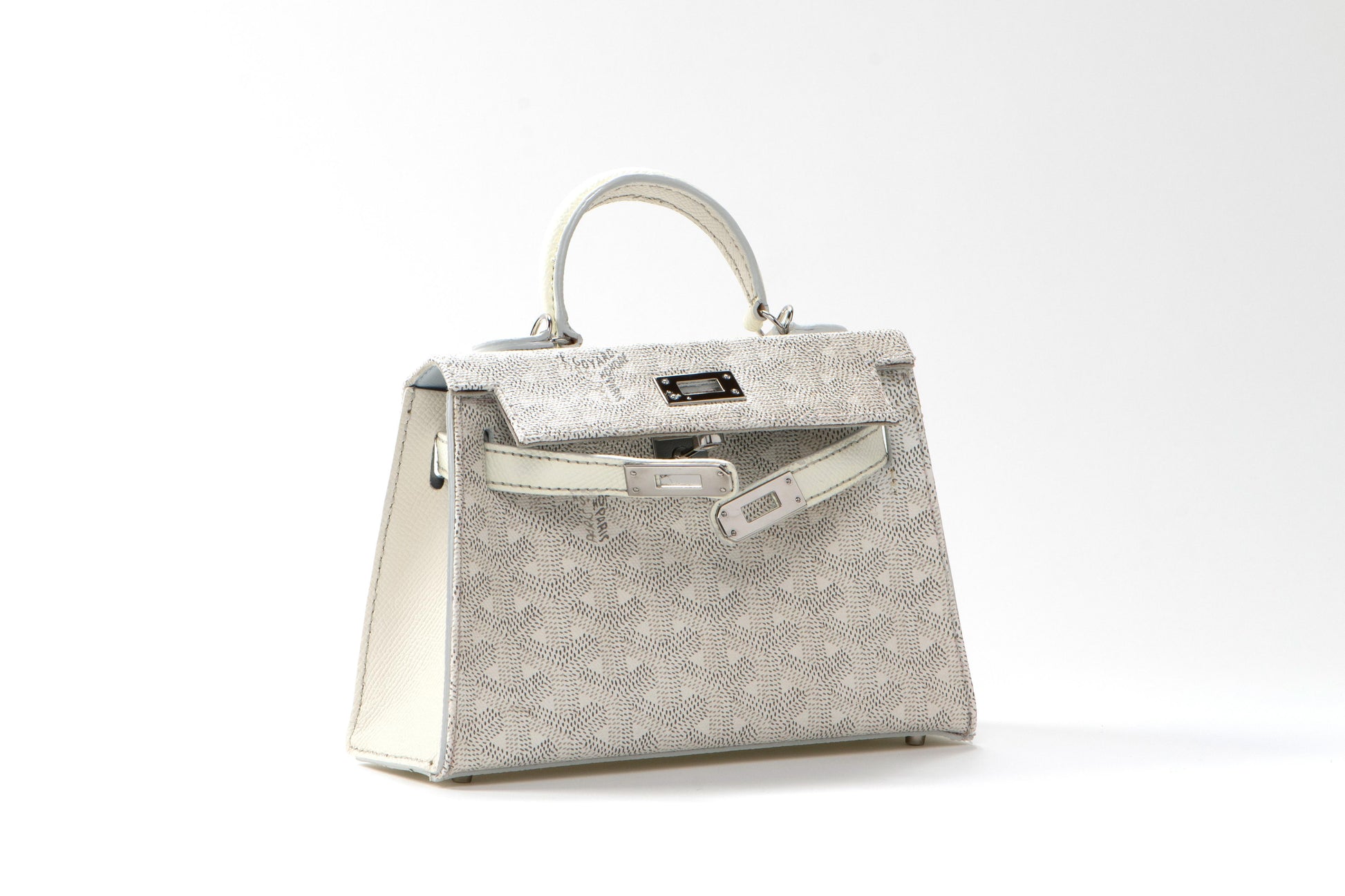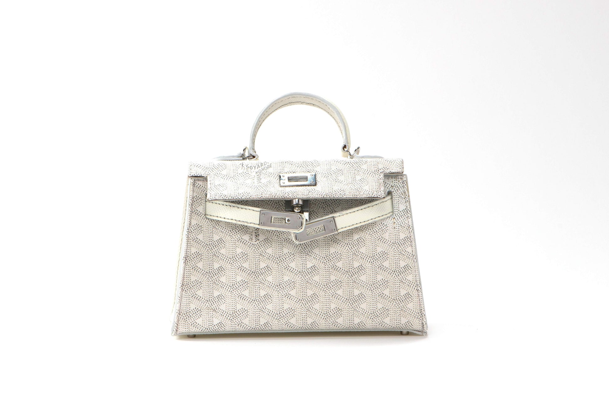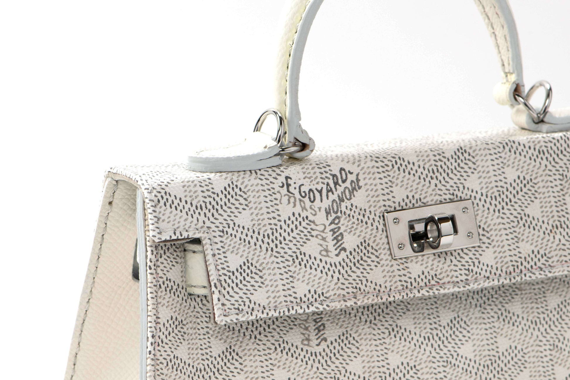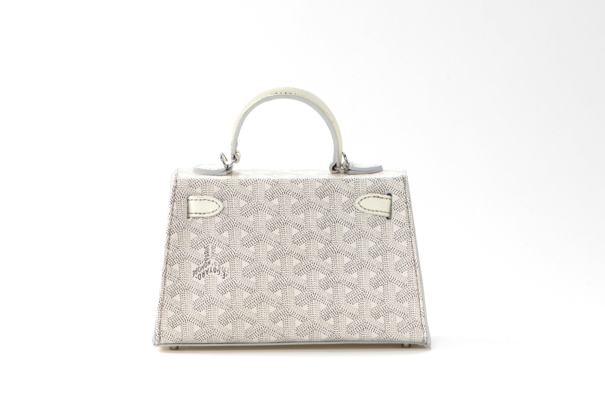 This piece was handcrafted using authentic goyard canvas, white epsom leather and premium silver tone hardware.