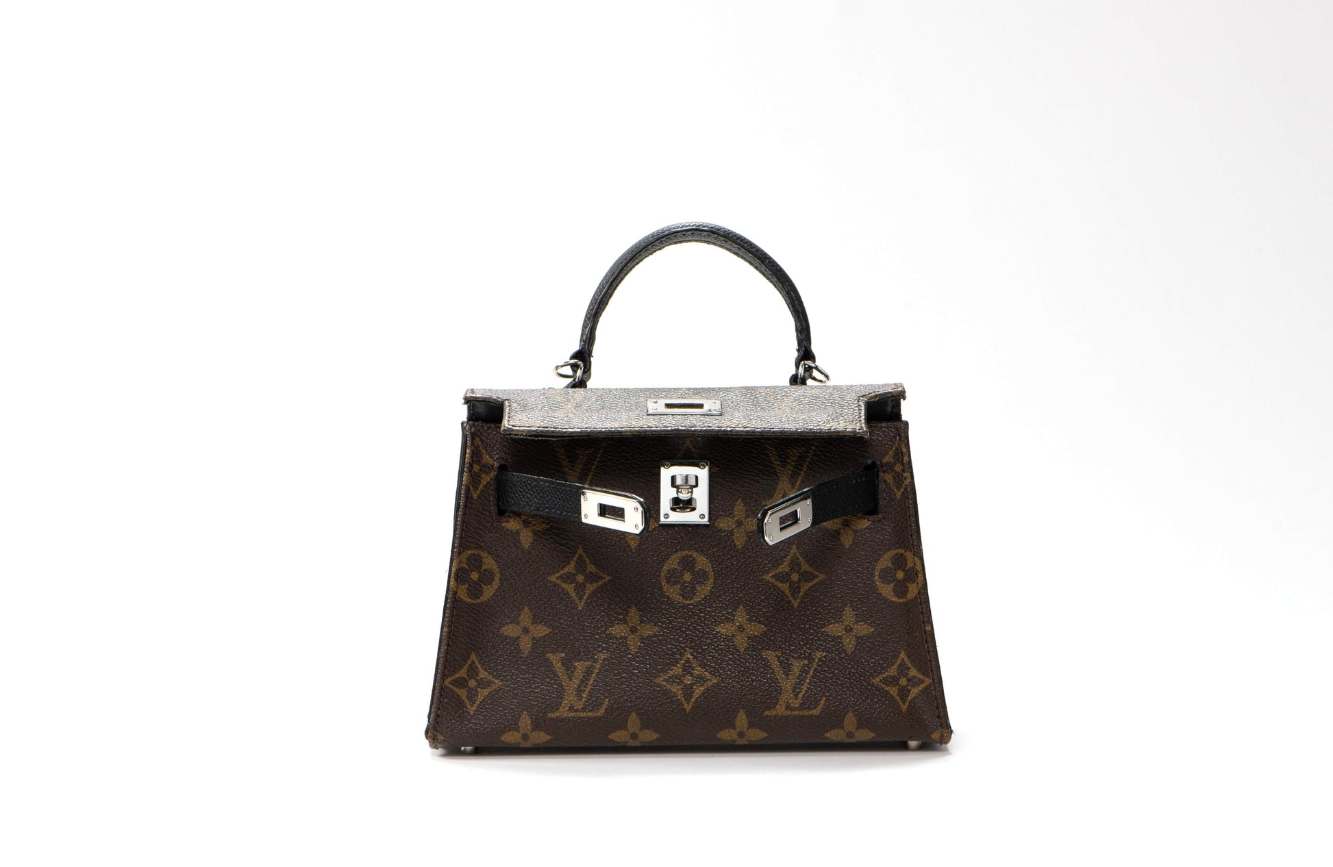 This bag was handcrafted using authentic LV monogram canvas, black epsom leather and premium silver tone hardware.