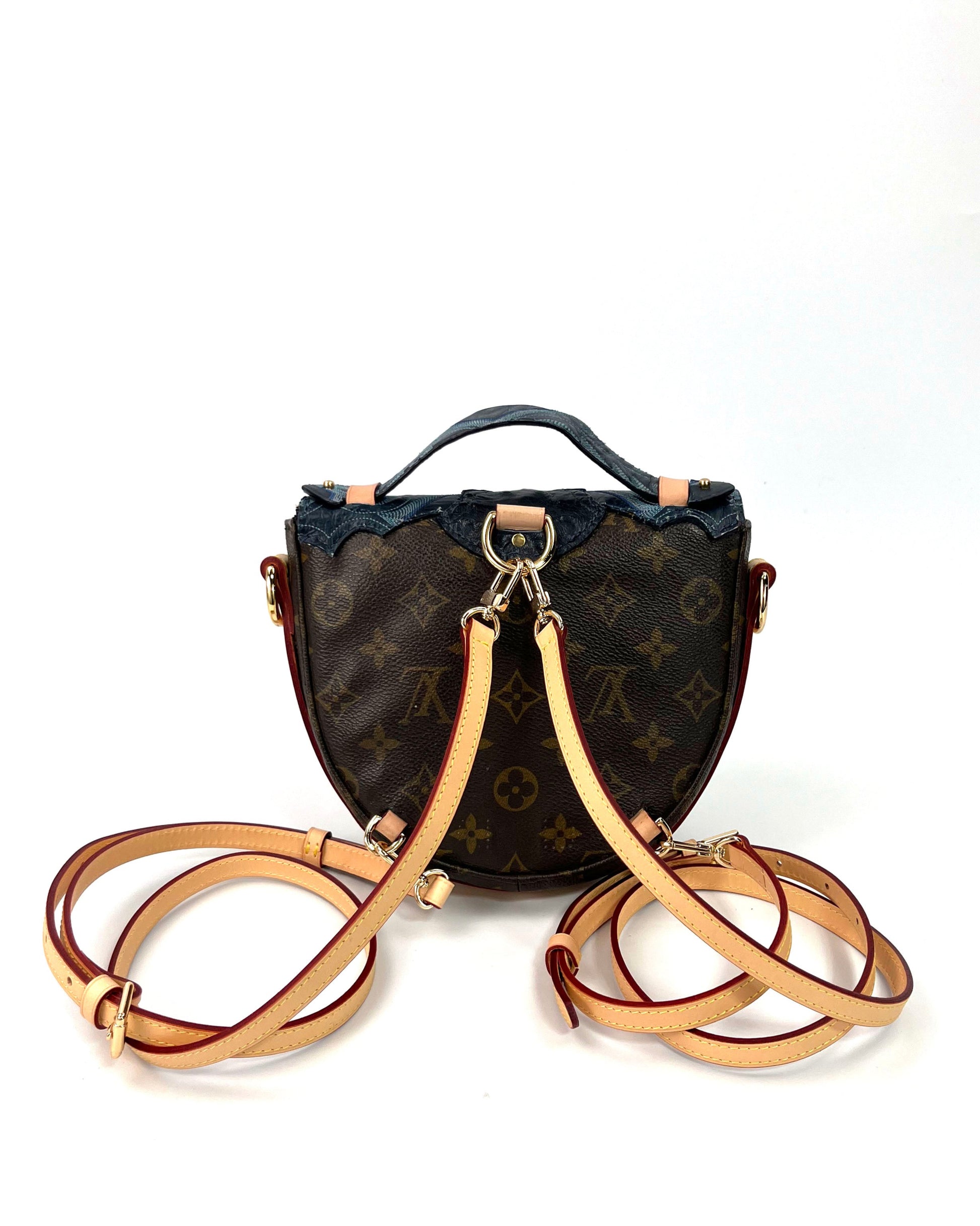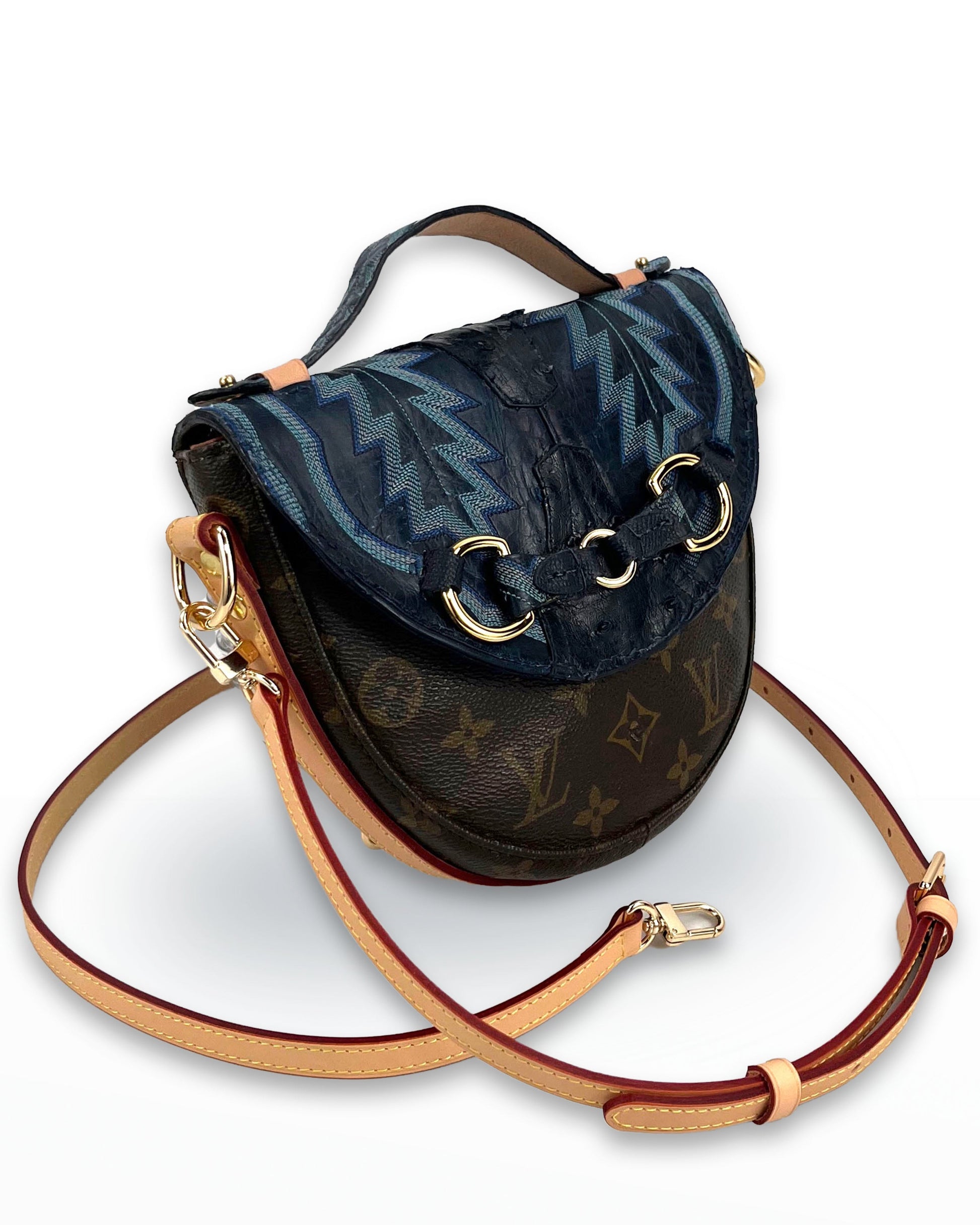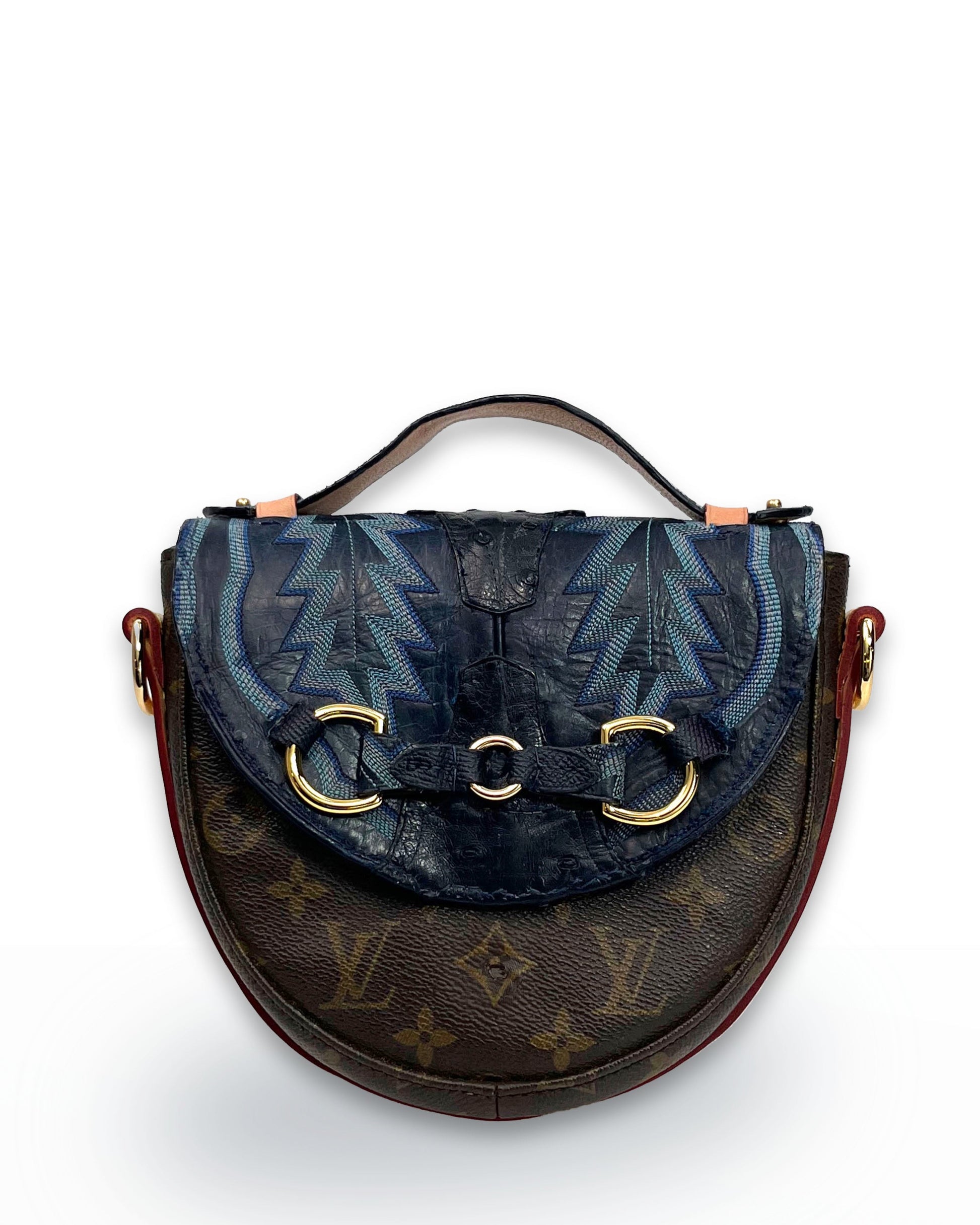 A rare creation reimagined from an authentic late-1980s Louis Vuitton Chantilly. Featuring vintage Rios of Mercedes cowboy boot leather and finished with gleaming gold-tone hardware, a horse-bit accent, and a natural vachetta strap. Converts seamlessly from crossbody to mini backpack — a distinctive blend of Western heritage and timeless sophistication. One-of-one