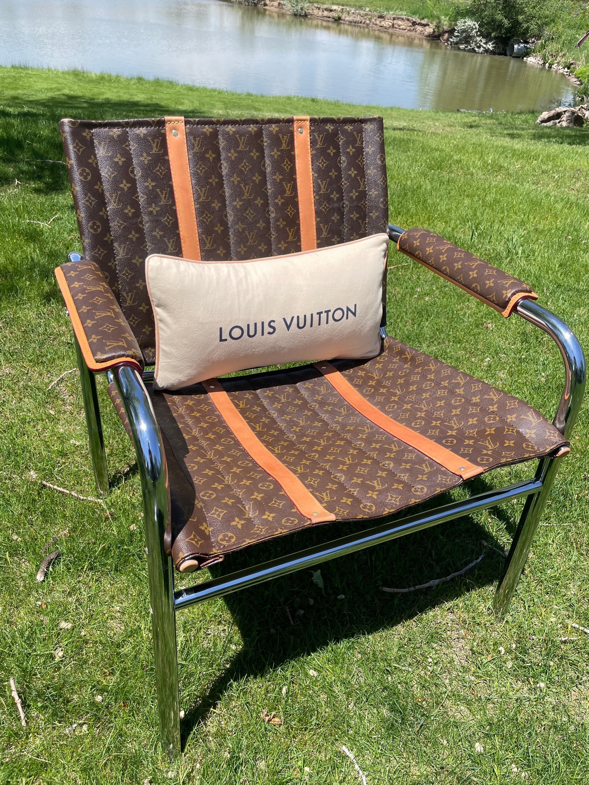 The original chrome armchair was deconstructed, reupholstered and hand sewn using authentic LV canvas and new Vachetta leather