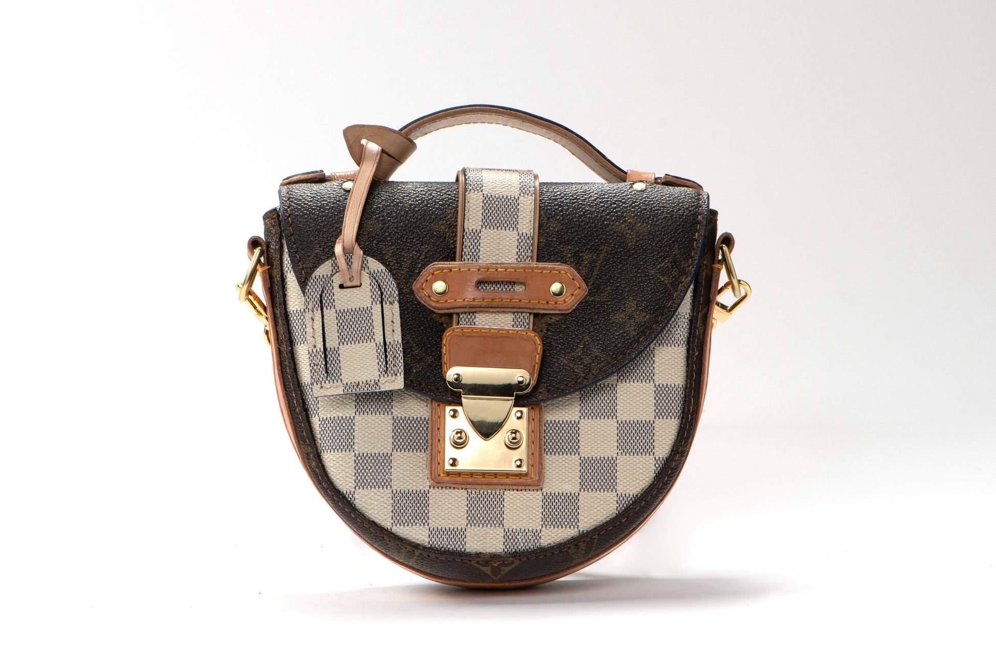 An exquisite reimagined piece, blending authentic monogram canvas from the late 80s with original damier accents and natural vachetta leather. A timeless revival of an iconic silhouette, brought back with elegance and intention.