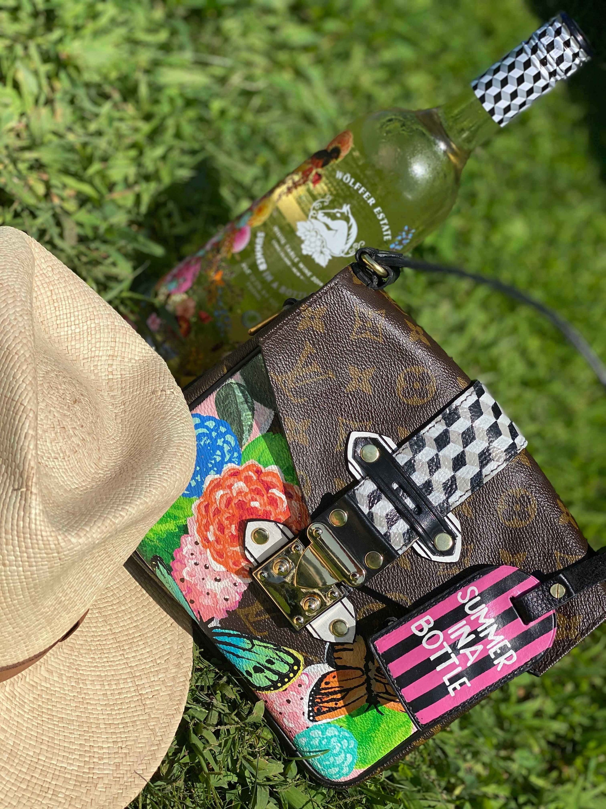 Inspired by lazy summer afternoons on long island’s south fork, Summer in a Bottle is wearable art. Florals and butterflies bloom across vintage LV canvas—each detail hand-painted in homage to wölffer estate’s rosé of the same name.