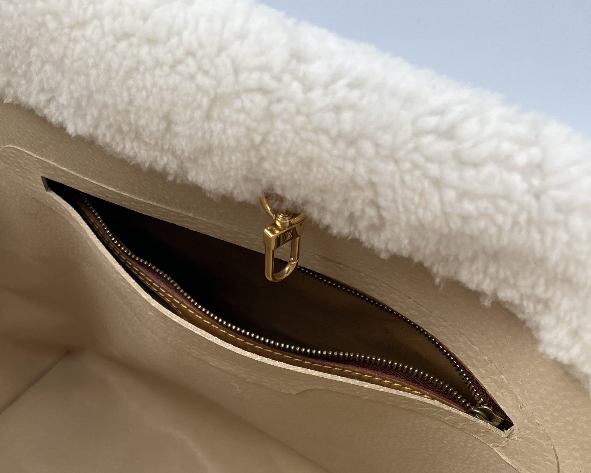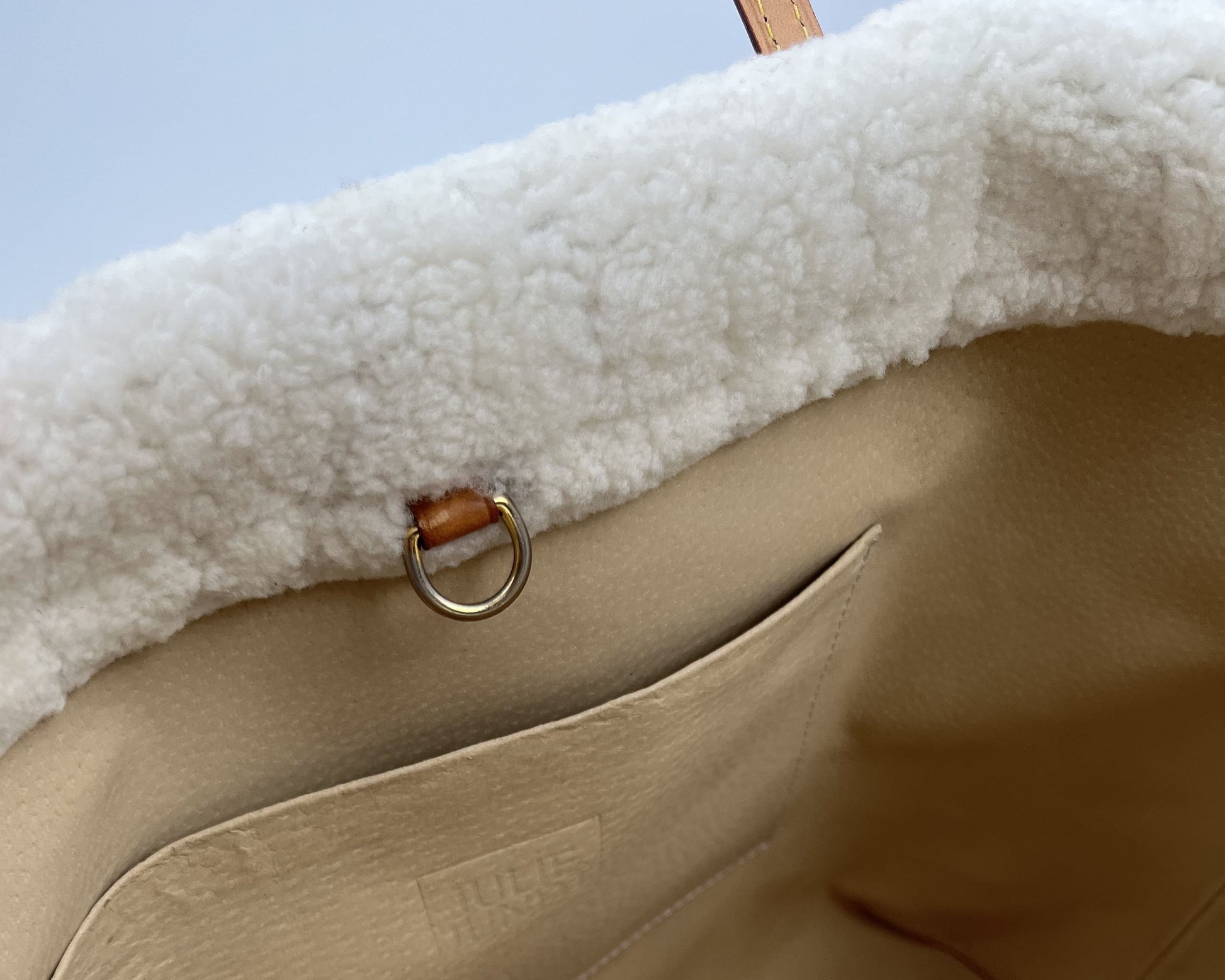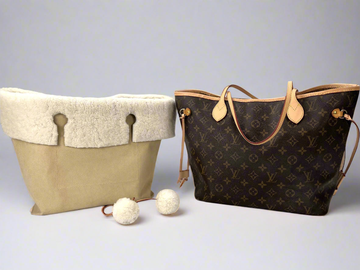 Turn your Louis Vuitton Neverfull into a winter statement piece with the EverLine Alpina, a removable shearling insert crafted to fit the bag perfectly. Made from genuine curly sheepskin and genuine leather, this cold-weather accessory transforms your tote with warmth, texture, and a touch of alpine charm.